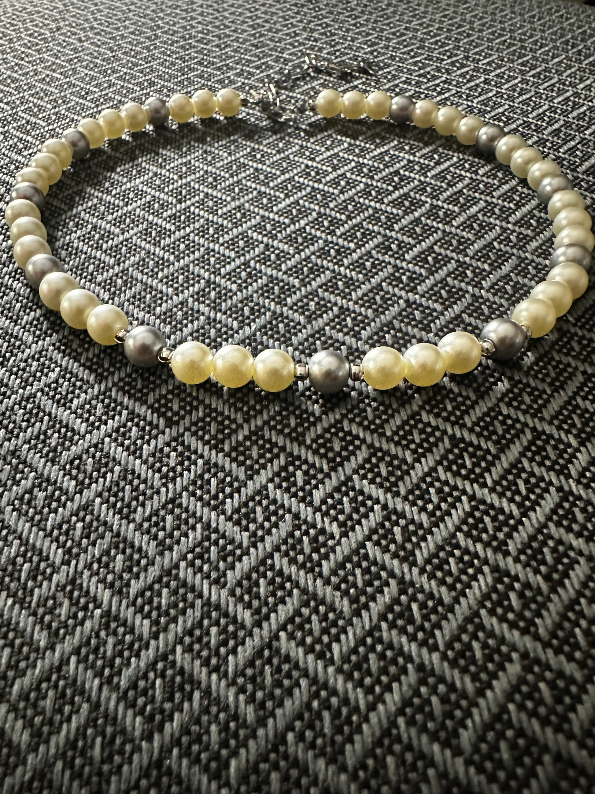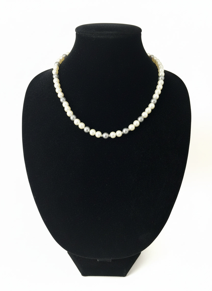 Polished pearl accents run vertically along the upper tie, while a subtle curved line of crystal embellishments flows toward the pointed tip, creating a soft sense of movement and balance. A small pearl bar detail adds a tailored finishing touch, echoing classic menswear elements reimagined in an artistic, fashion-forward form. Pearl necklace can be removed and worn separately as an accessory.